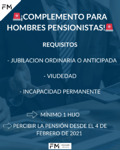 Desde el 4 de febrero de 2021, los hombres pensionistas también pueden solicitar el complemento para reducir la brecha de género 👏 Este beneficio aplica para quienes perciben pensiones de:
